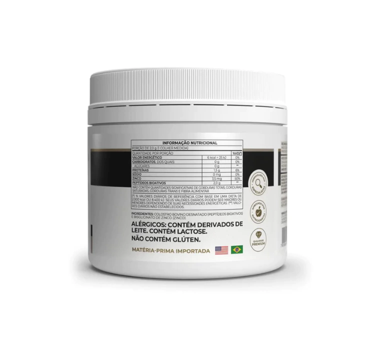 - Fonte de peptídeos bioativos de colostro bovino e lactoferrina bovina.