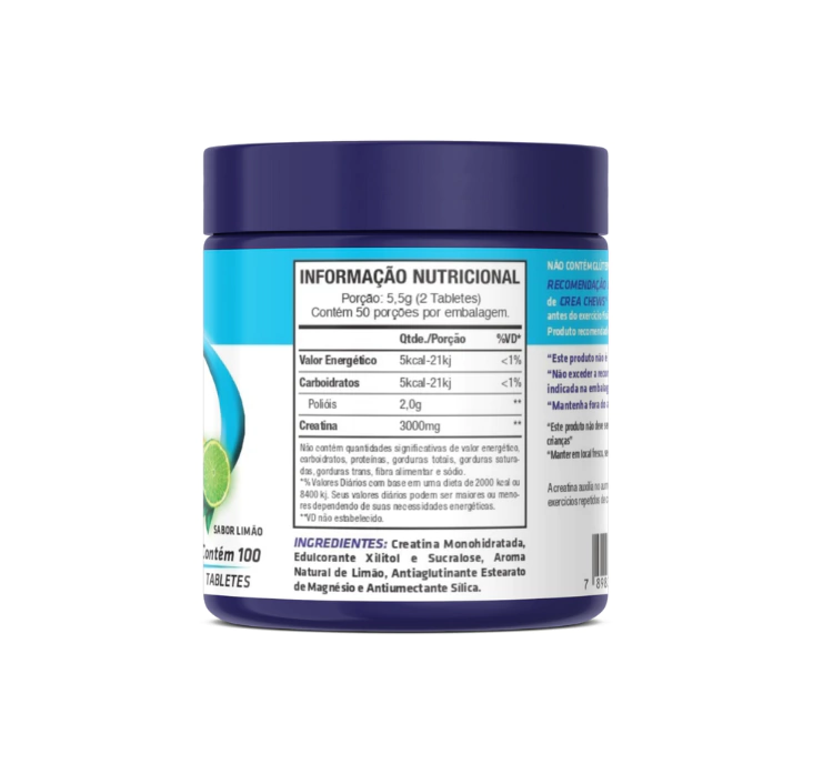 CREA CHEWS fornece 3g de Creatina Monoidratada por porção: Creatina é um produto destinado a complementar os estoques endógenos de creatina.