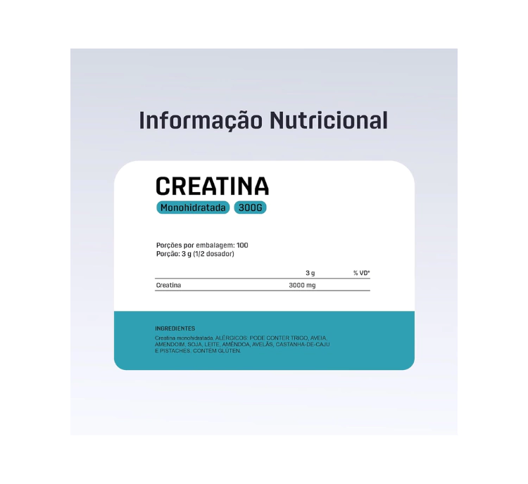 Adicione 3g (1/2 dosador) de Creatina em 200ml de água e misture com auxilio de uma coqueteleira. Consuma imediatamente após o preparo. Consumir uma porção uma vez ao dia.
