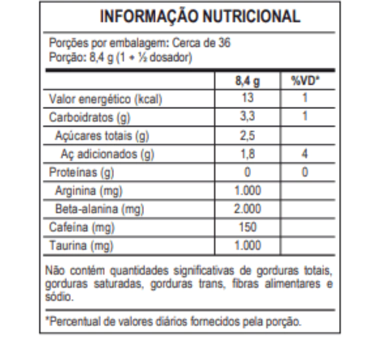 - Taurina: A taurina é um composto que está associado com aumento de desempenho, foco e concentração, além de– aumento da sensibilidade à insulina e aumento da quebra de gordura.