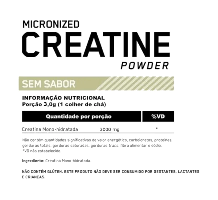 A Creatina Optimum Nutrition é um suplemento que fornece 3000mg (3g) de creatina por dose. A creatina serve como fonte de produção de energia para as células musculares, de modo que melhora a força e o tônus muscular. A Creatina Mono-hidratada e Micronizada Optimum Nutrition é um produto de alta qualidade, fabricado com ingredientes de procedência garantida e internacional. É um produto sem sabor e de fácil diluição, o que facilita o seu consumo.