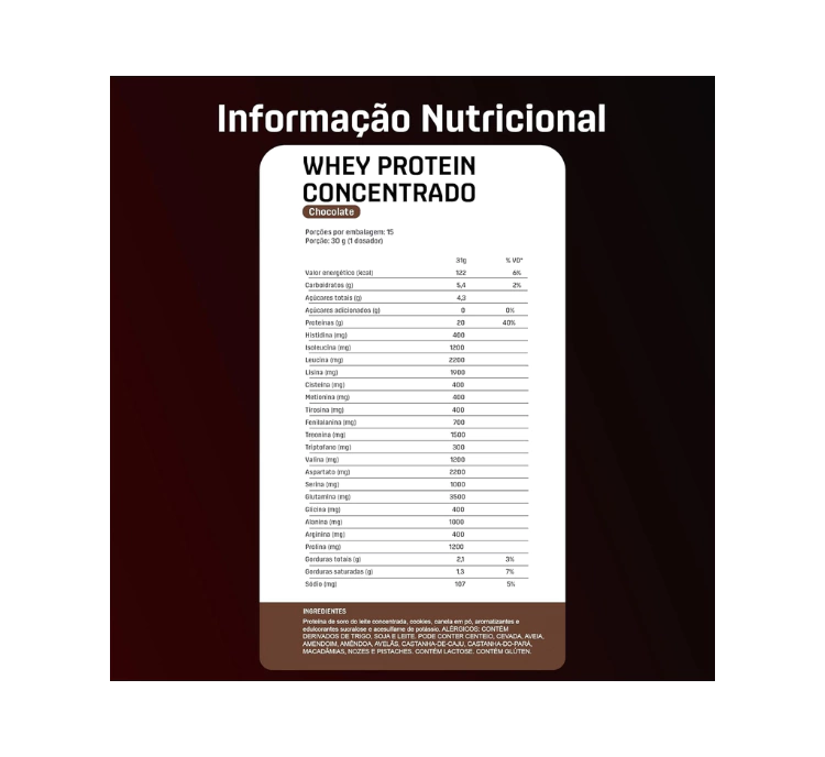 Sem sabor: Proteína concentrada do soro de leite e emulsificante lecitina de soja.